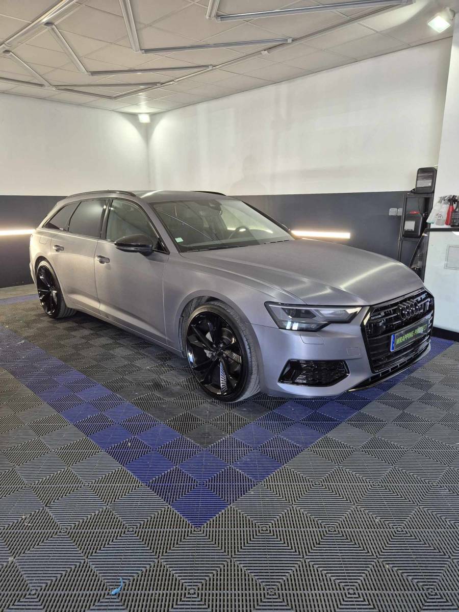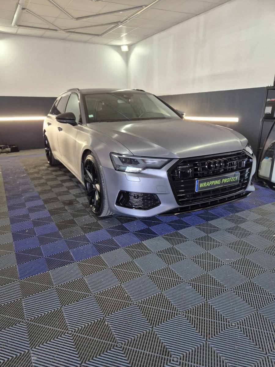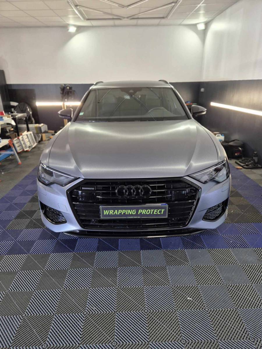 Covering complet gris aluminium effet brossé, déchromage complet et traintement céramique sur Audi A6 à Le Havre.