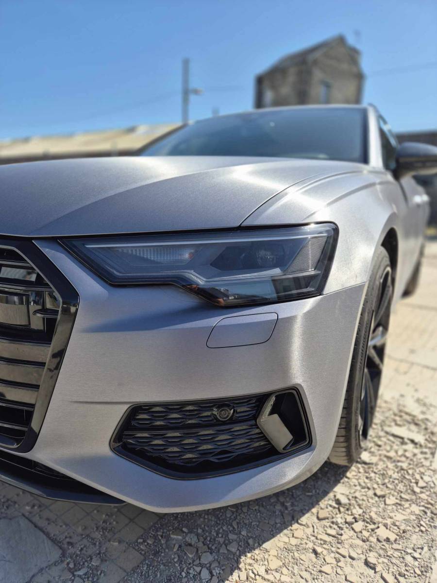Commençons par ce covering complet d'exception couleur gris aluminium brossé, ce revêtement élégant et moderne a donné à cette sublime Audi A6 un look unique et audacieux qui ne passe pas inaperçu!