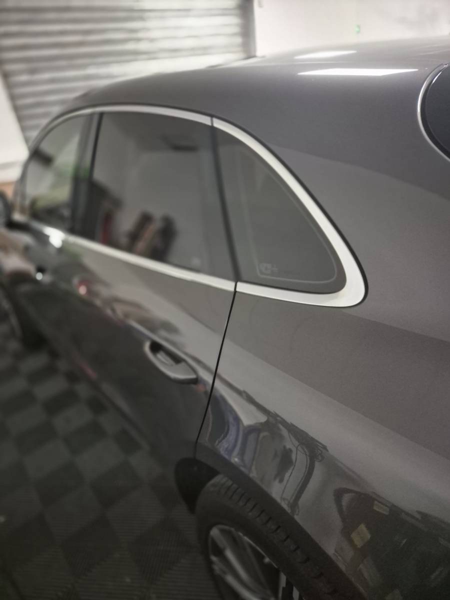 Les éléments chromés d’origine autour des vitres ont été soigneusement recouverts d’un film noir satiné de haute qualité. Ce déchromage permet d’adopter un style plus épuré et agressif, en accord avec les codes esthétiques actuels, tout en préservant les surfaces d’origine.