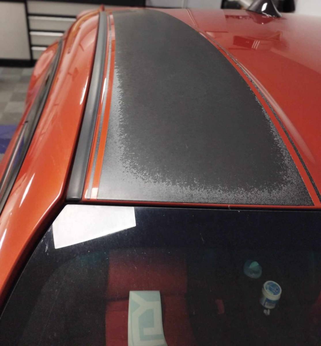 Nous avons donc effectué une dépose de l'ancien adhésif, nous avons ensuite effectué un polissage pour pouvoir appliquer le nouveau ce qui redonne un coup d'éclat au véhicule et redonne son coté sportif d'origine.