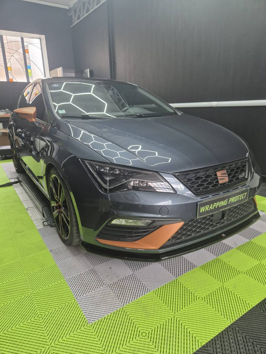 Chez Wrapping Protect, chaque projet est pensé pour sublimer la personnalité et le caractère de chaque véhicule. La Seat León Cupra, déjà connue pour son tempérament sportif et ses performances, a bénéficié d’une transformation esthétique sur mesure qui renforce encore davantage son style agressif et racé.