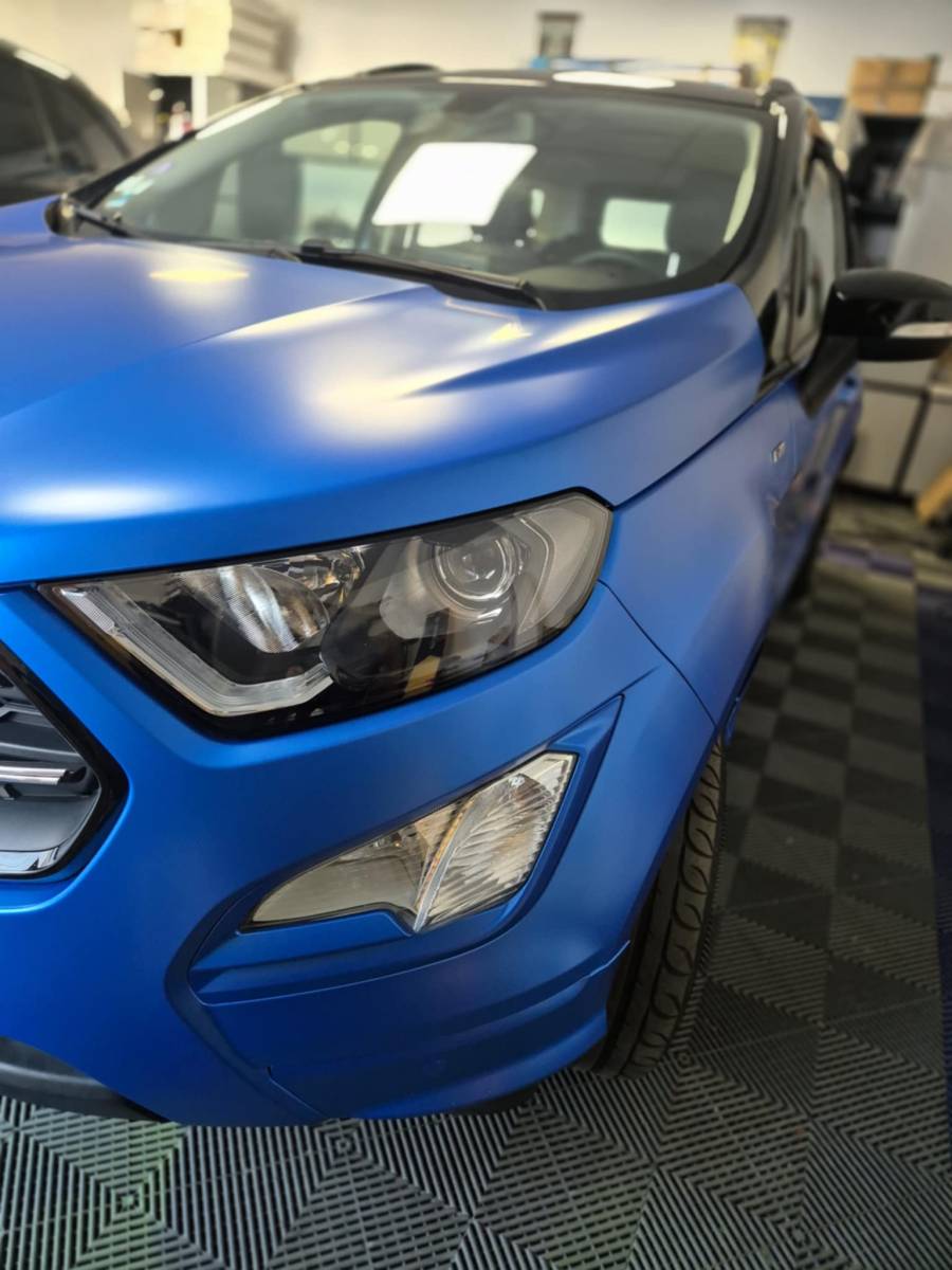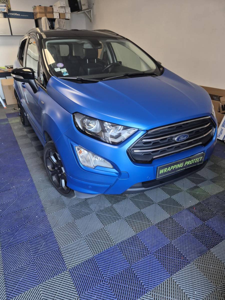 Covering complet bleu satin pour cette Ford Ecosport à Le Havre.